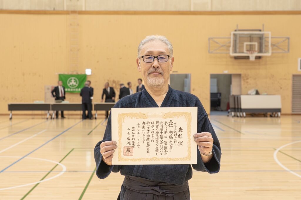 先週開催された年齢別大会で、我らが剣友会の会長、加藤先生が3位入賞されました!!